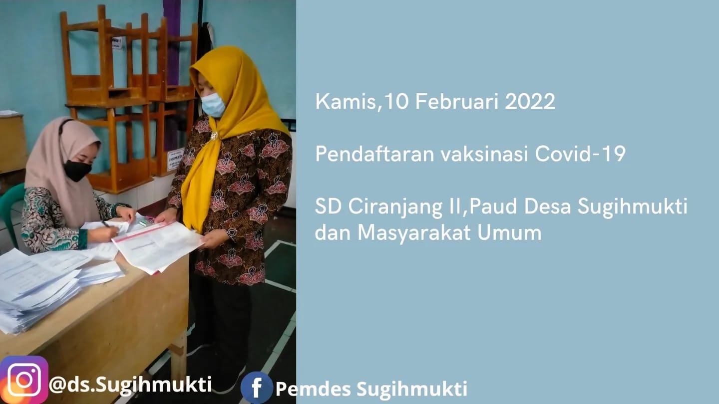 Pada hari Kamis, 10 Februari 2022 di kantor Desa Sugihmukti telah diadakan pelaksanaan pemberian Vaksinasi Covid-19 dengan sasaran sebagai berikut: