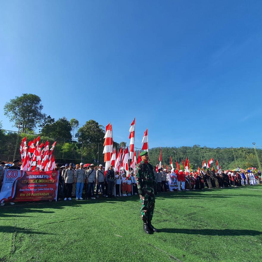 Upacara Bendera dalam memperingati Hari Ulang Tahun Negara Kesatuan Republik Indonesia Ke 80 Di wilayah Desa Sugihmukti Kecamatan Pasirjambu Kab.Bandung Jawa Barat, yang di hadiri oleh masyarakat Desa Sugihmukti